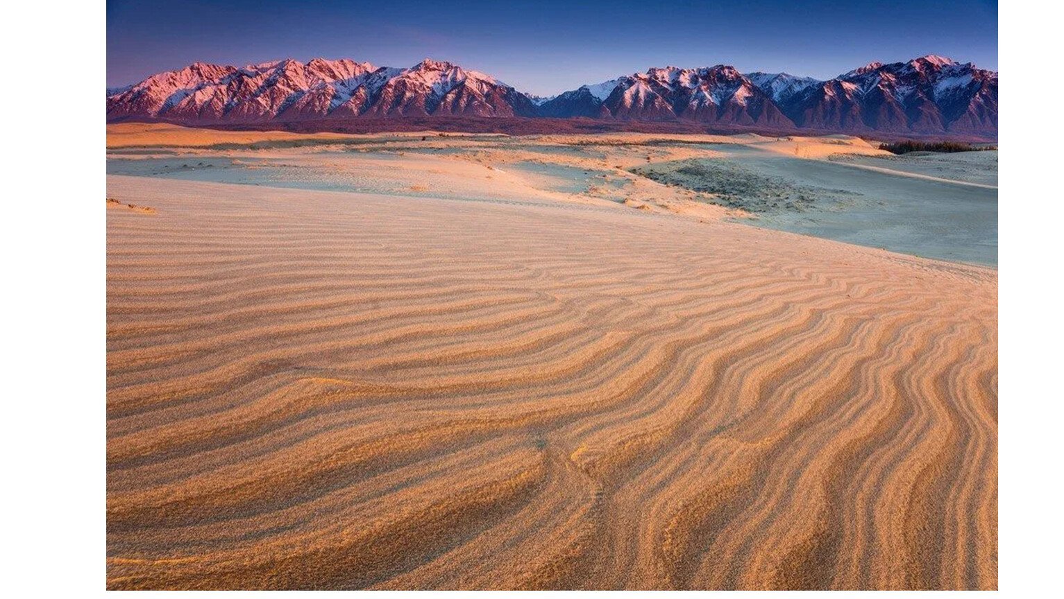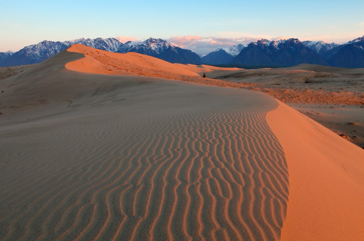 - Маршрут к озеру Чара: Это одно из самых живописных мест в регионе, расположенное всего в нескольких километрах от пустыни. Озеро имеет ярко-синий цвет и окружено живописными горами.