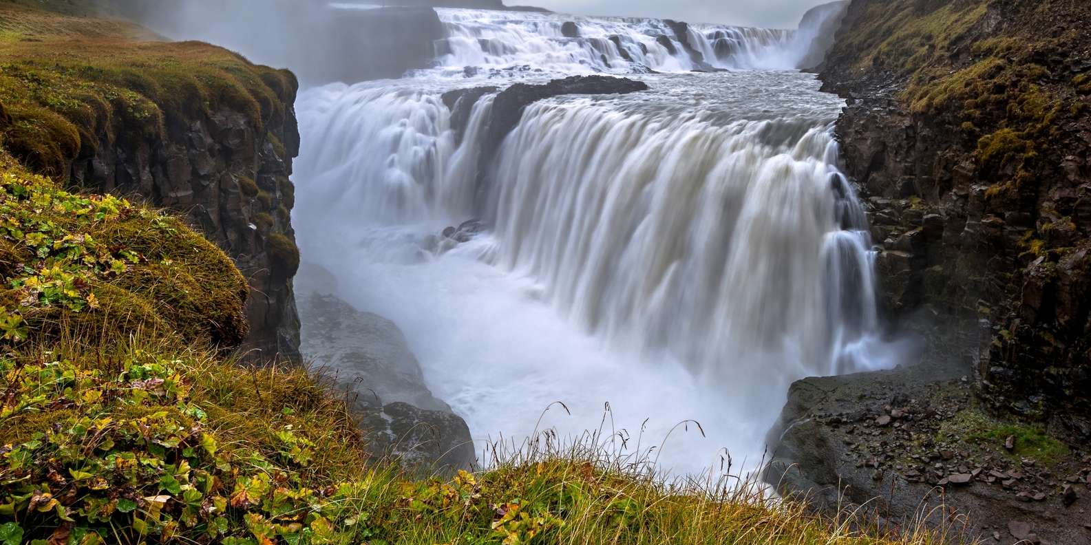 - Гульфосс – один из самых известных водопадов в Исландии, известный своим двойным каскадом и великолепным видом, особенно в солнечную погоду, когда радуга часто появляется над ним.